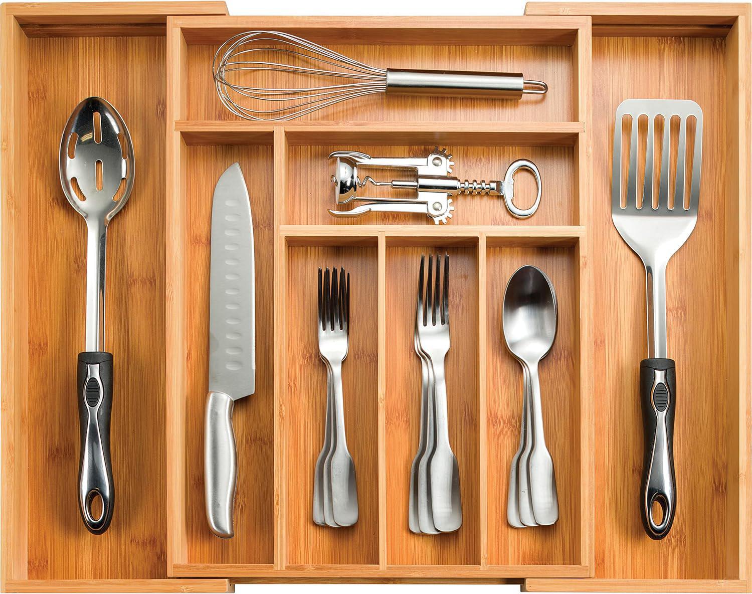 1) Separadores de cajón expandibles para cubiertos y utensilios